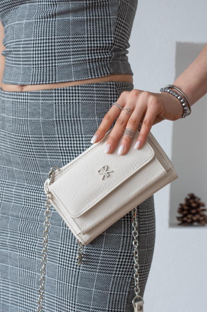 / ImPolo Farah Krem Kadın Omuz Çanta Ve Cüzdan 14×20 Ebatında