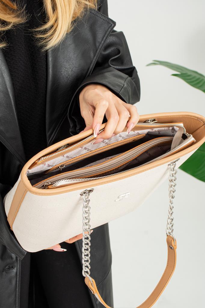 ImPolo Ida Krem Kamel Kadın Omuz Çantası 38x26 Ebatında quantity
