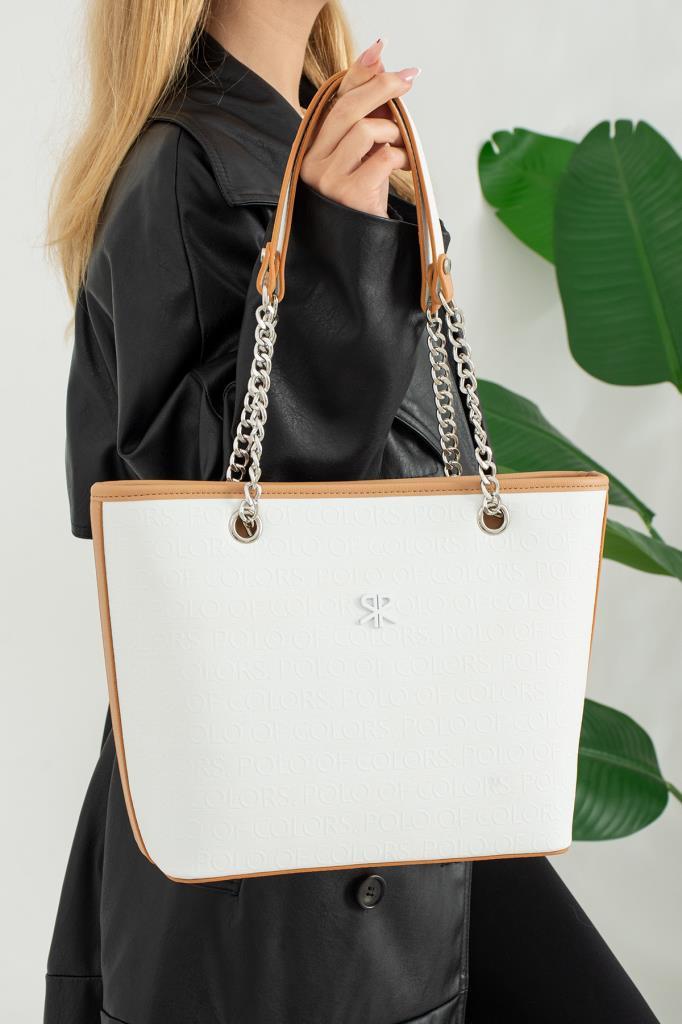 / ImPolo Ida Nora Beyaz Kamel Kadın Omuz Çantası Kombin Çanta26X38 Cüzdan10x13