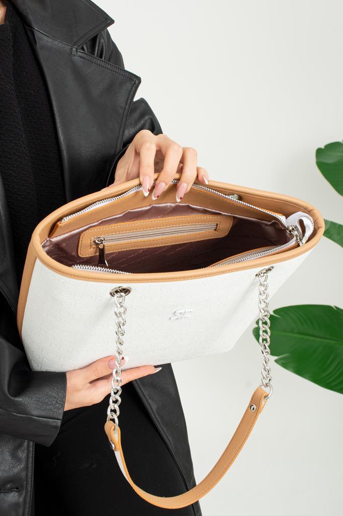ImPolo Ida Nora Beyaz Kamel Kadın Omuz Çantası Kombin Çanta26X38 Cüzdan10x13
