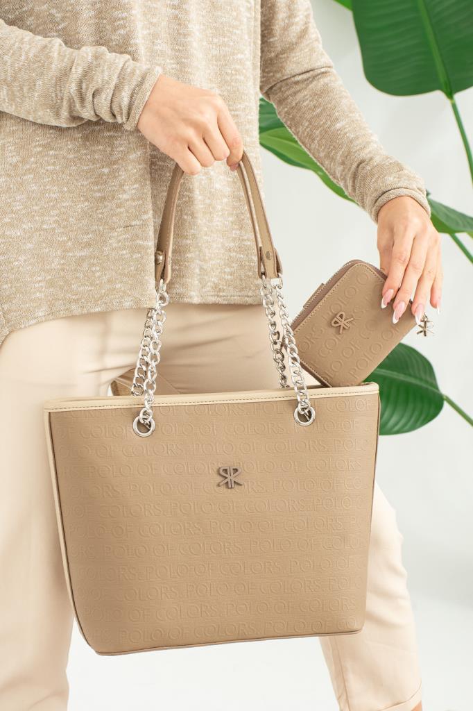 ImPolo Ida Nora Krem Kamel Kadın Omuz Çantası Kombin Çanta26X38 Cüzdan10x17