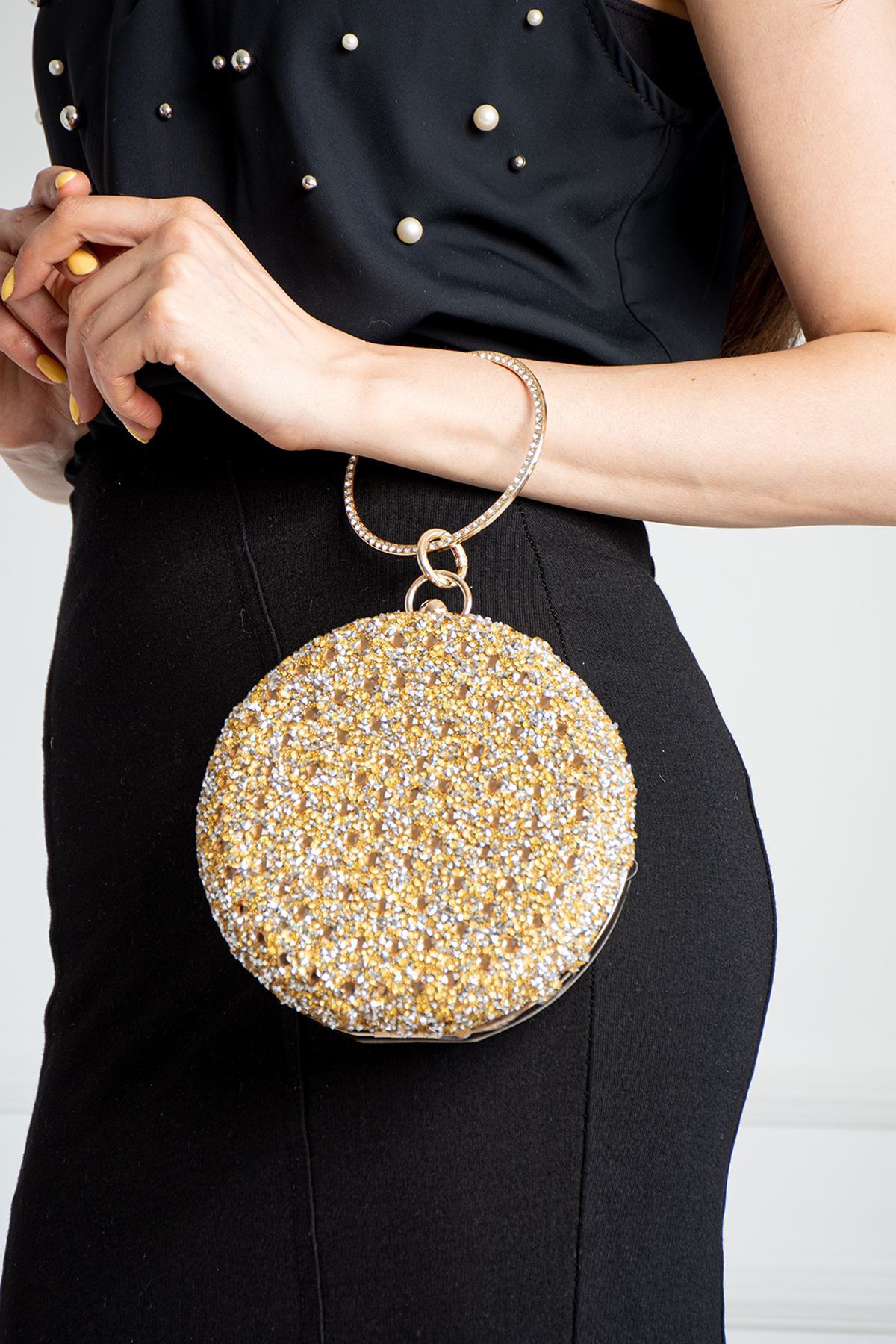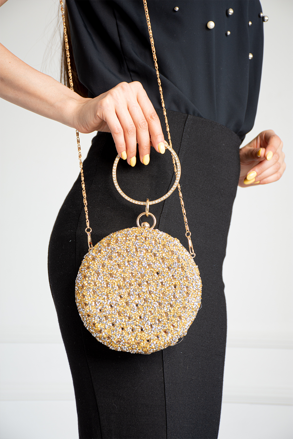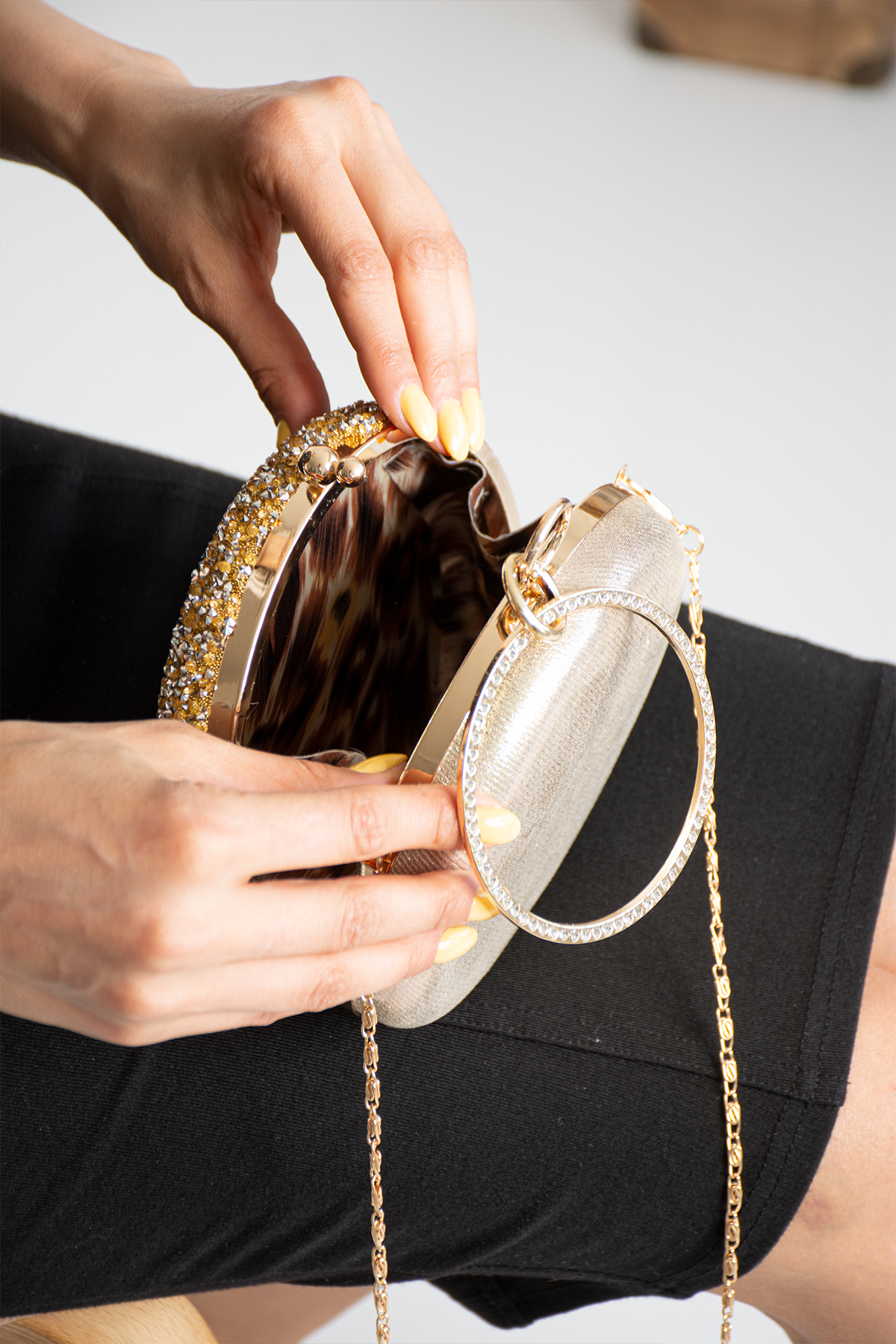 / İmpolo Jesi Altın Taşlı Bilezik Abiye Omuz Ve Kol Çanta 16×16 Ebat