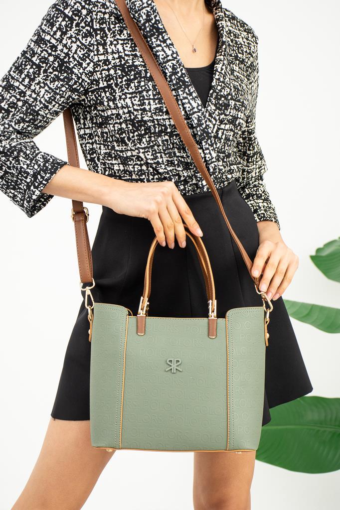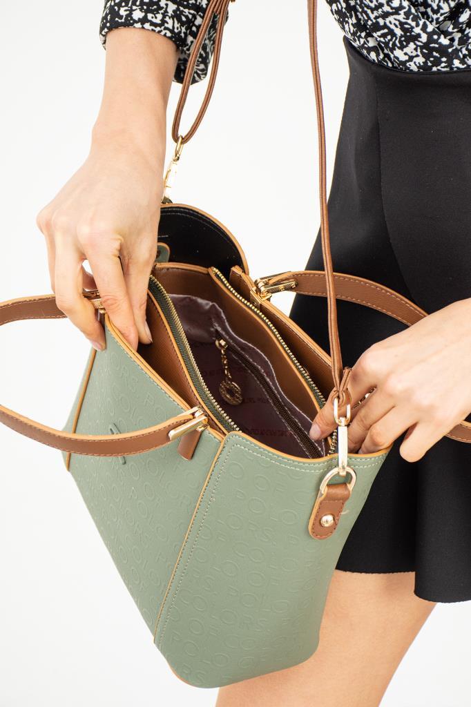 ImPolo Karina A.Yeşil KameI Gofraj Baskı Kol Ve Omuz Çantası 21×33 Ebat