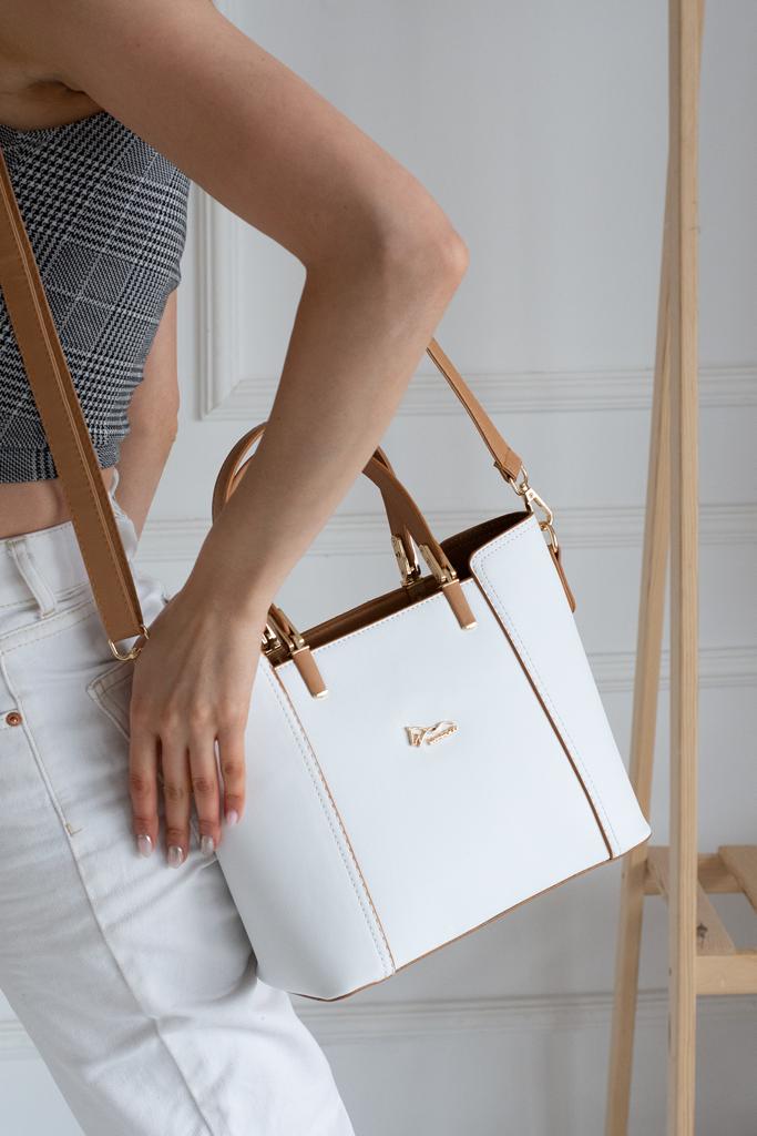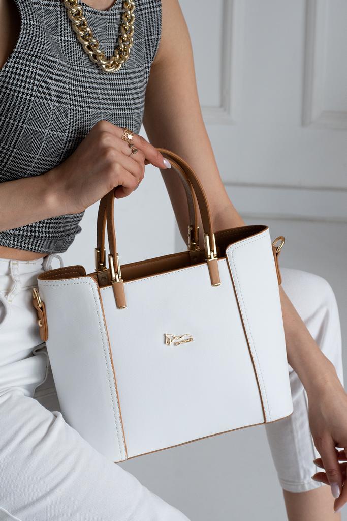 ImPolo Karina Beyaz KameI Gofraj Baskı Kol Ve Omuz Çantası 21×33 Ebat