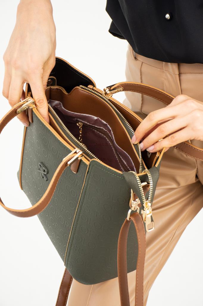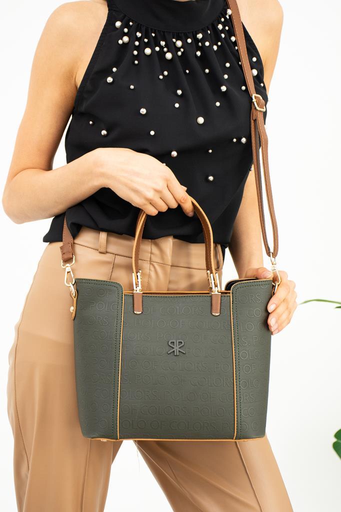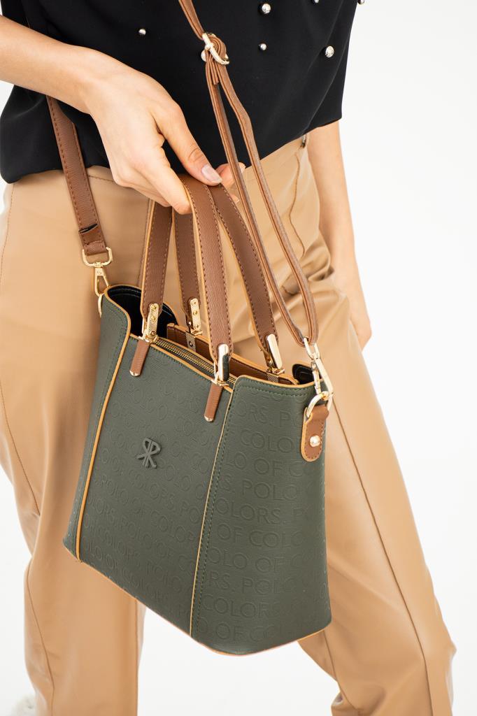 ImPolo Karina Haki KameI Gofraj Baskı Kol Ve Omuz Çantası 21×33 Ebat