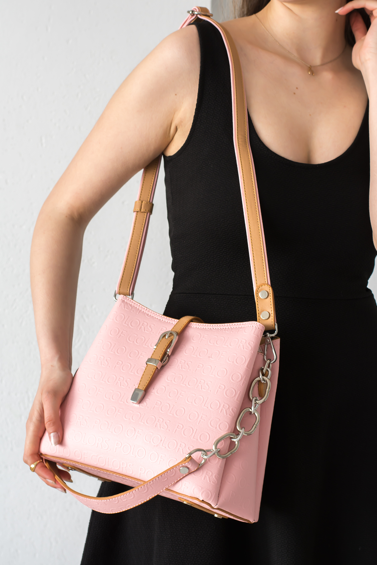 İmpolo Keti Üçgözlü Açık Pudra Taba Kadın Çanta