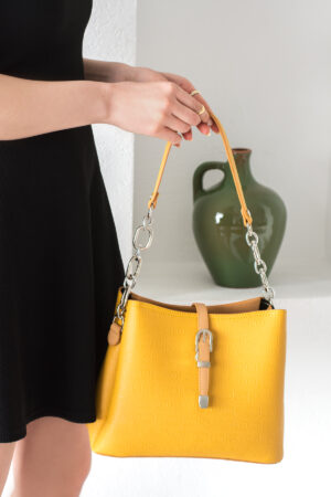İmpolo Keti Üçgözlü Açık Hardal Taba Kadın Çanta