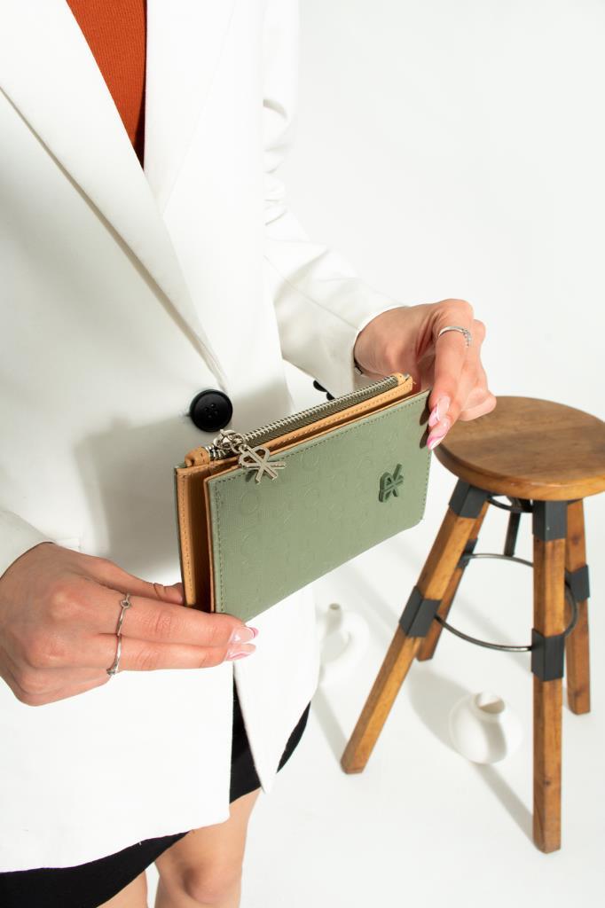 / ImPolo Liana Açık Yeşil Taba Gofraj Desen Kadın El Cüzdanı 17×10 Ebatında