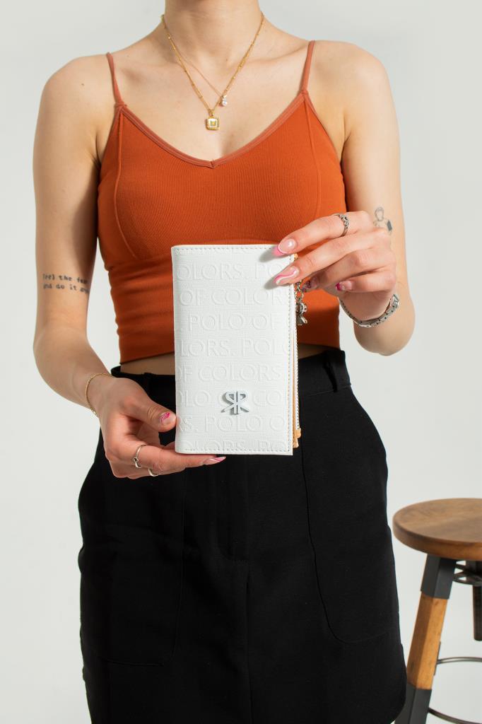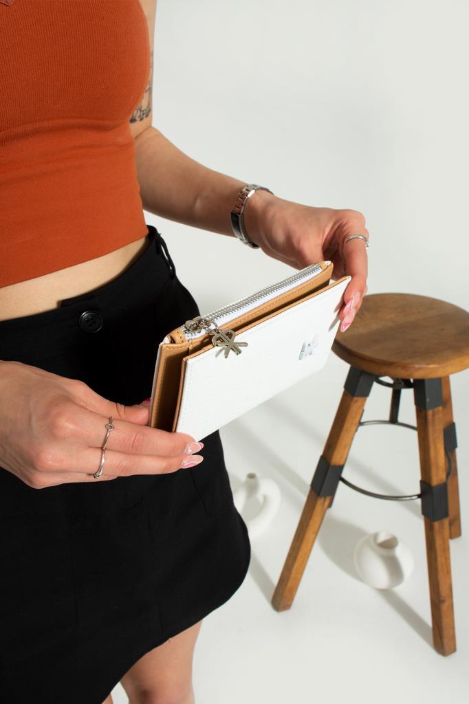 / ImPolo Liana Beyaz Taba Gofraj Desen Kadın El Cüzdanı 17×10 Ebatında