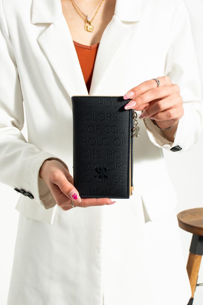 / ImPolo Liana Lacivert Taba Gofraj Desen Kadın El Cüzdanı 17×10 Ebatında