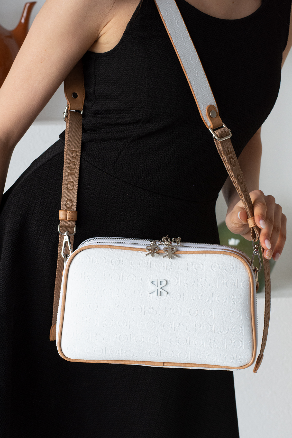 / İmpolo Lili Ortaboy Üç gözlü Beyaz Taba Kadın Omuz Çanta