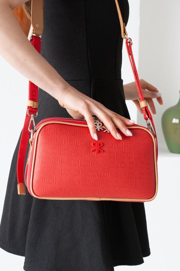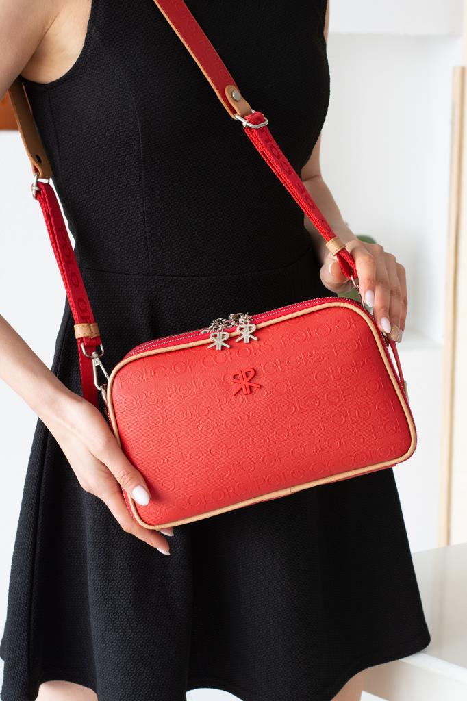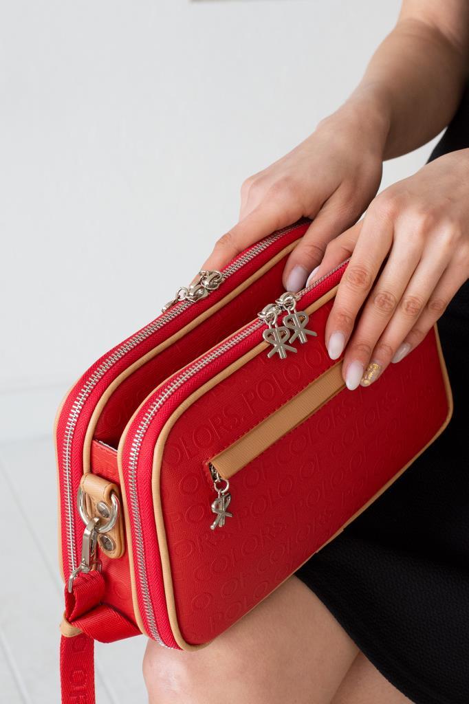 İmpolo Lili Ortaboy Üç gözlü Kırmızı Taba Kadın Omuz Çanta