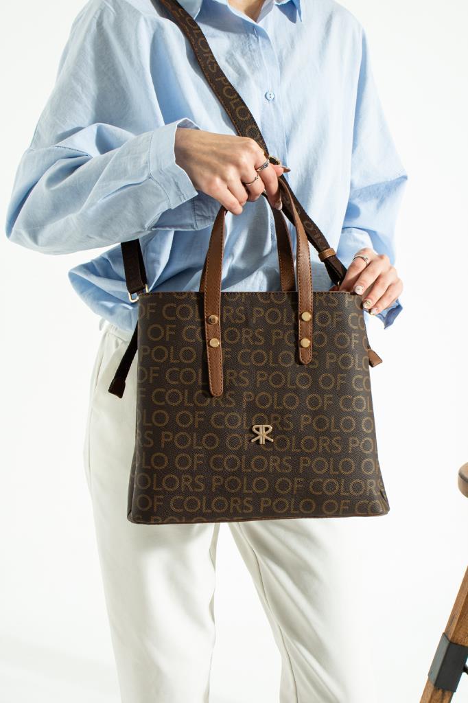 / İmpolo Lori Empirme Baskı Kahve Taba Kadın Omuz Ve Kol Çantası 27×34 Ebatında