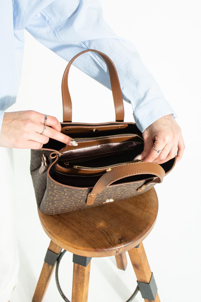 İmpolo Lori Empirme Baskı Kahve Taba Kadın Omuz Ve Kol Çantası 27x34 Ebatında quantity
