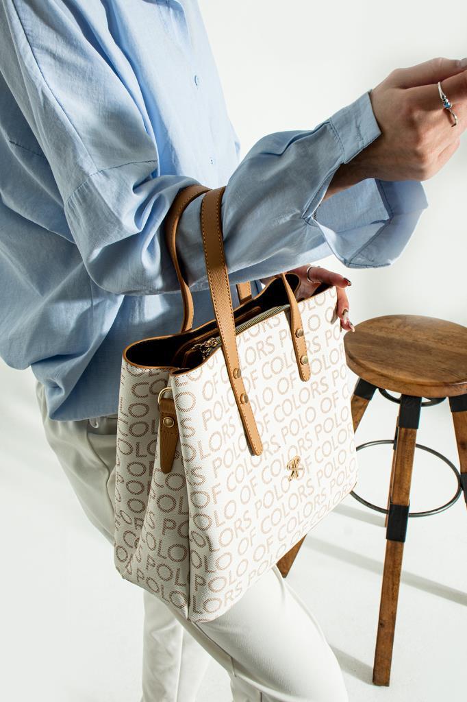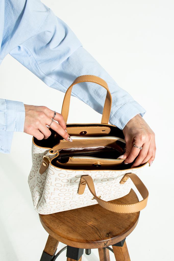 İmpolo Lori Empirme Baskı Krem Kamel Kadın Omuz Ve Kol Çantası 27x34 Ebatında quantity