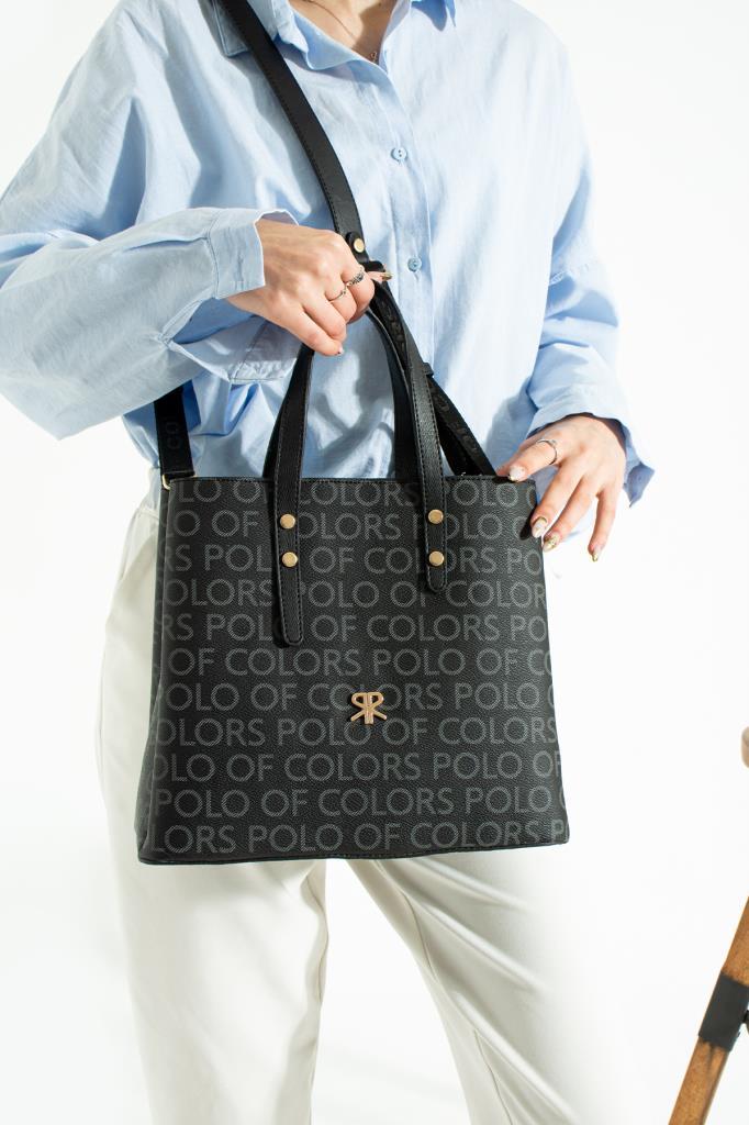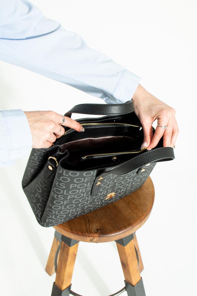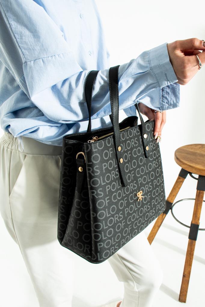 İmpolo Lori Empirme Baskı Siyah Kadın Omuz Ve Kol Çantası 27x34 Ebatında quantity