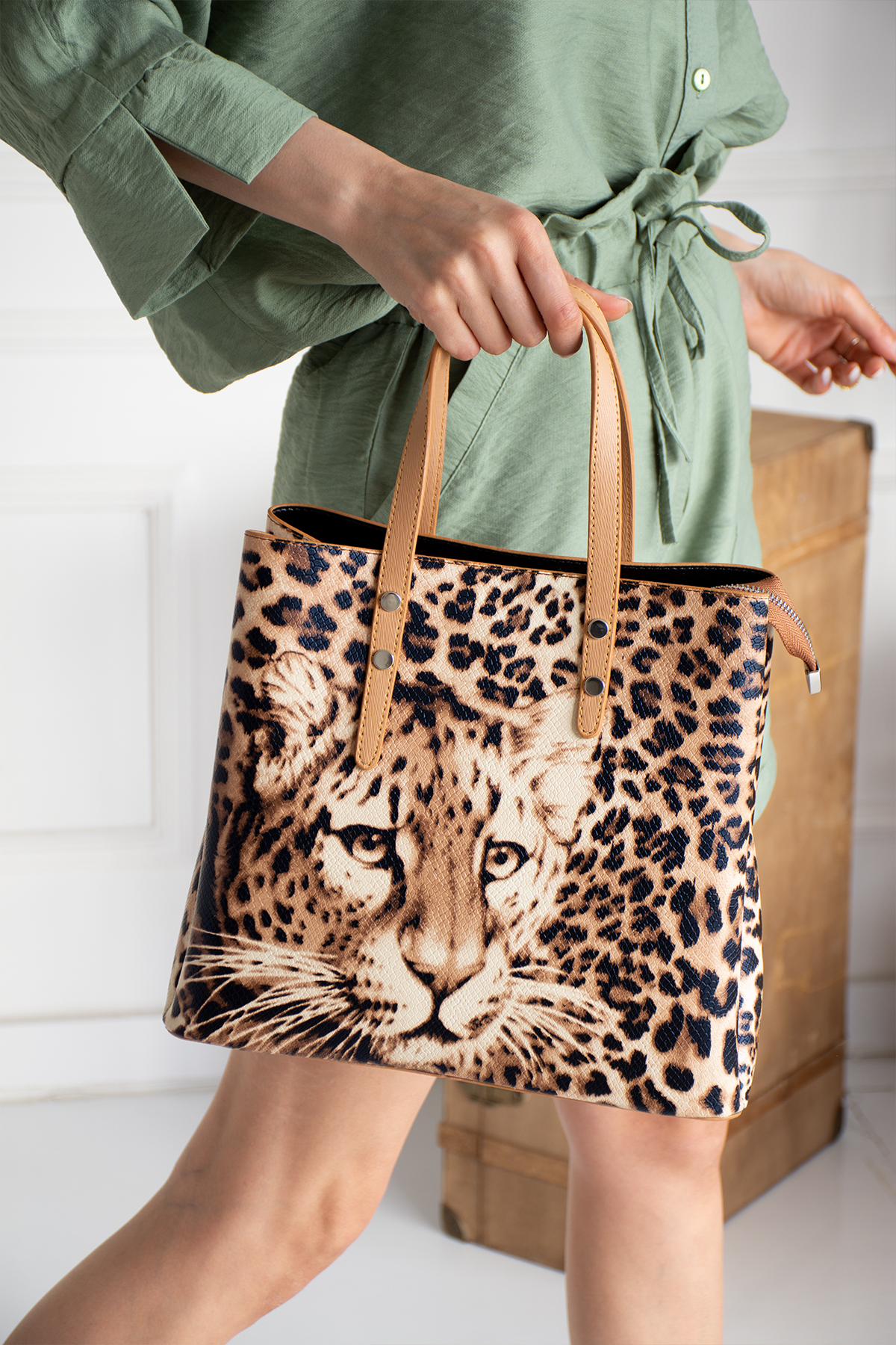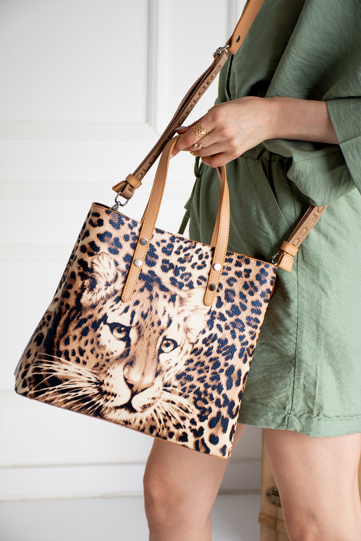 İmpolo Lori Omuz Taba Leopar Kadın Çanta 27×34 Ebat