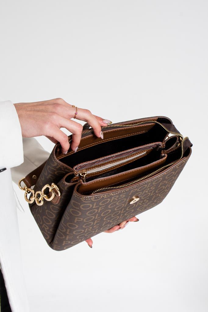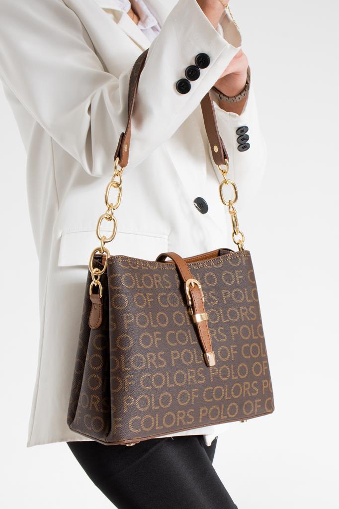İmpolo Marin Kahve Taba Empirme Baskı Kadın Omuz Çantası 22×25 Ebatında