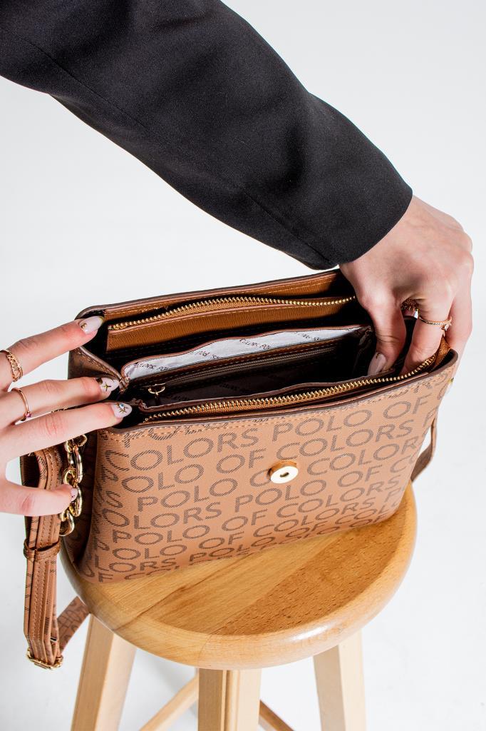 İmpolo Marin Krem Kamel Empirme Baskı Kadın Omuz Çantası 22×25 Ebatında