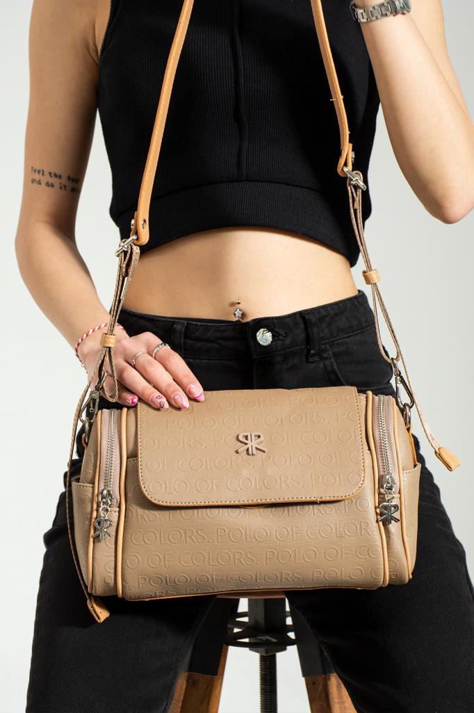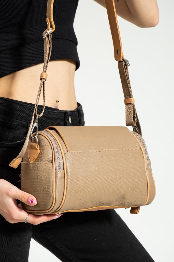 ImPolo Meri Kum Gofraj Baskı Silindir Tarzı Kadın Omuz Çapraz Çantası 22×28 Ebatında