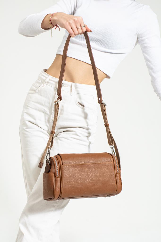 / ImPolo Meri Taba Gofraj Baskı Silindir Tarzı Kadın Omuz Çapraz Çantası 22×28 Ebatında