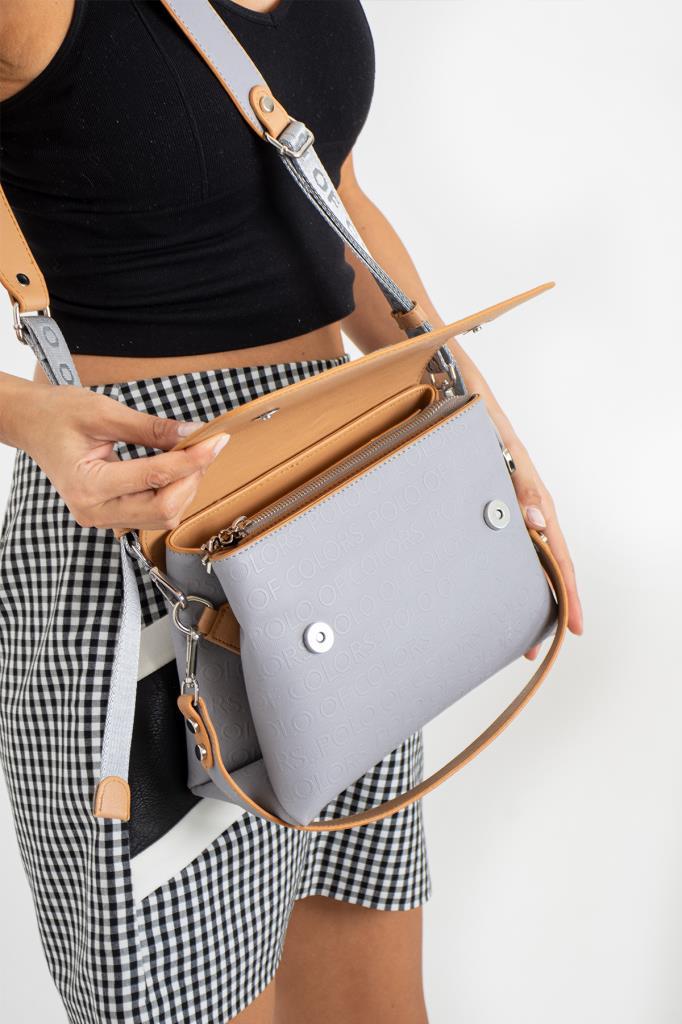 / Impolo Neomi Gri Kadın Kombin Çanta 22×26 Cüzdan 12X10 Ebat