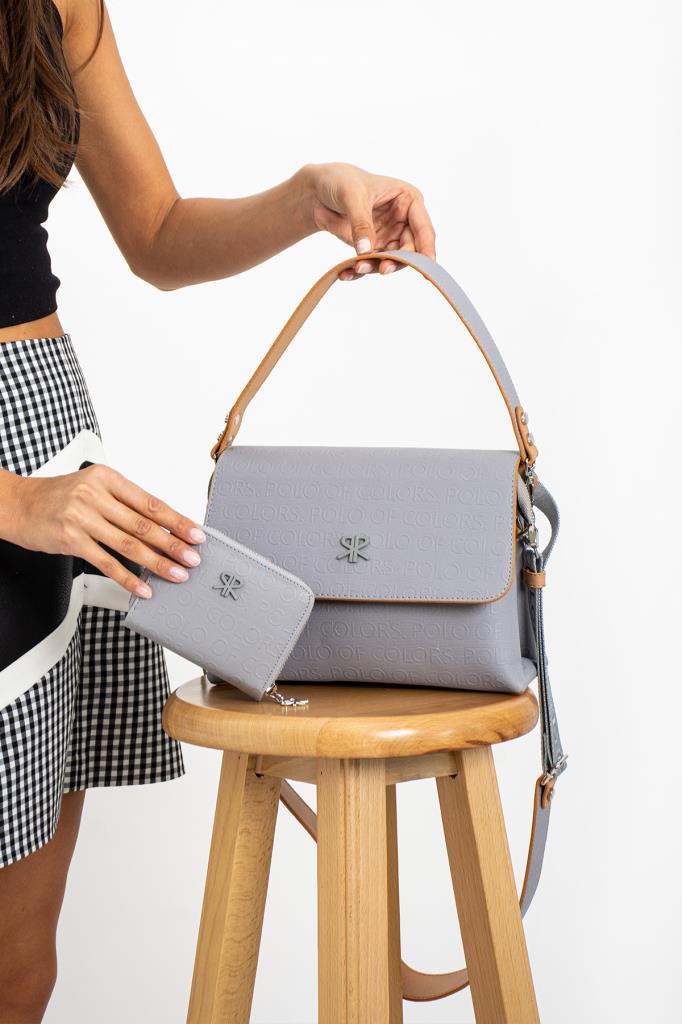 Impolo Neomi Gri Kadın Kombin Çanta 22×26 Cüzdan 12X10 Ebat