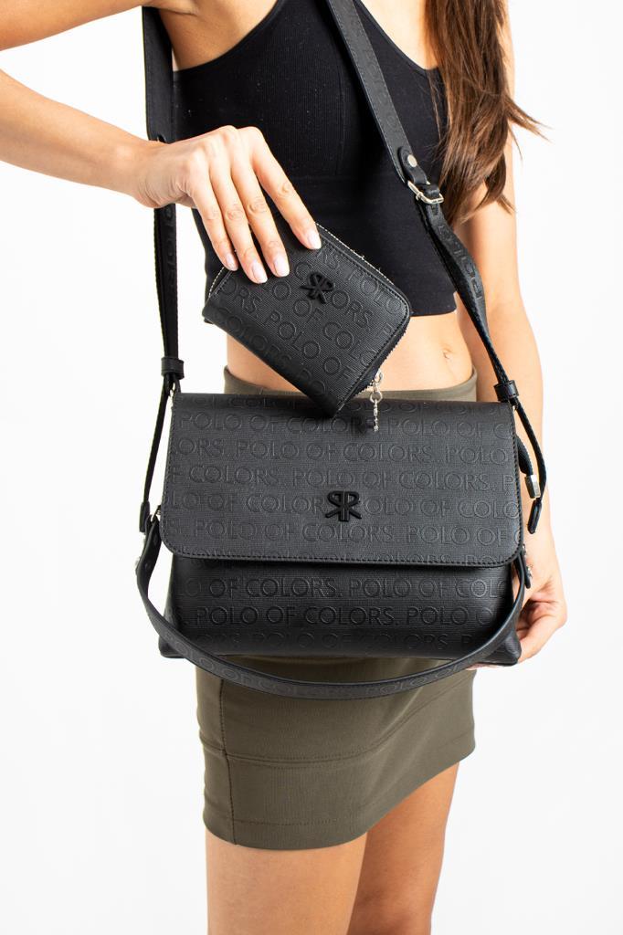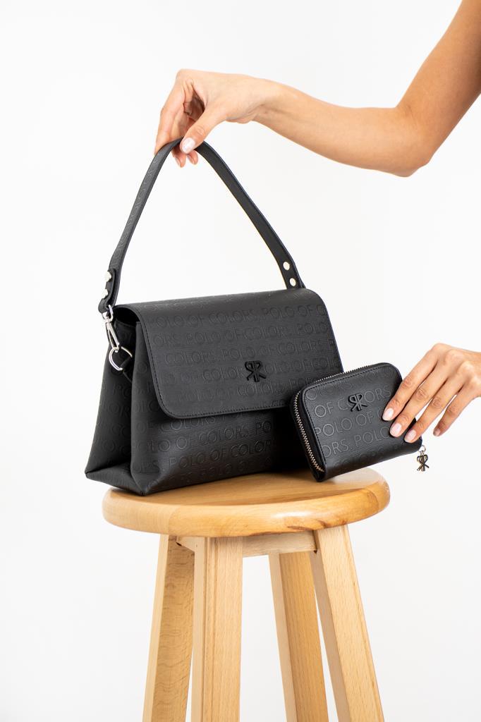 Impolo Neomi Siyah Kadın Kombin Çanta 22×26 Cüzdan 12X10 Ebat