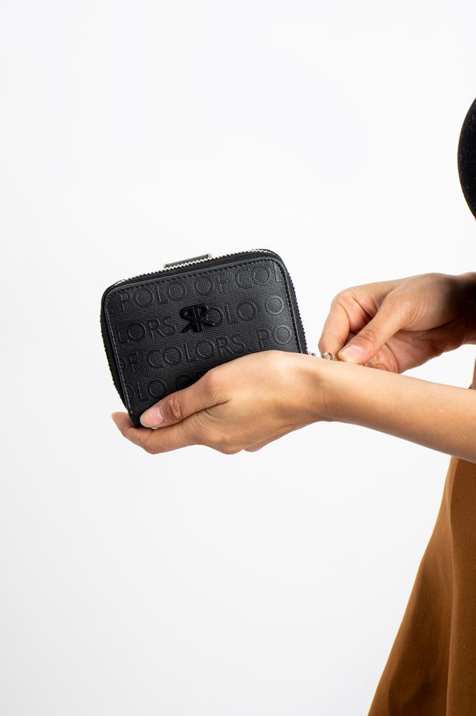 Impolo Nora Siyah Kum Kadın Cüzdan 10×13 Ebatında