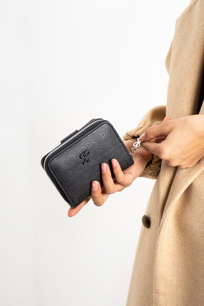 Impolo Nora Siyah Taba Kadın Cüzdan 10×13 Ebatında