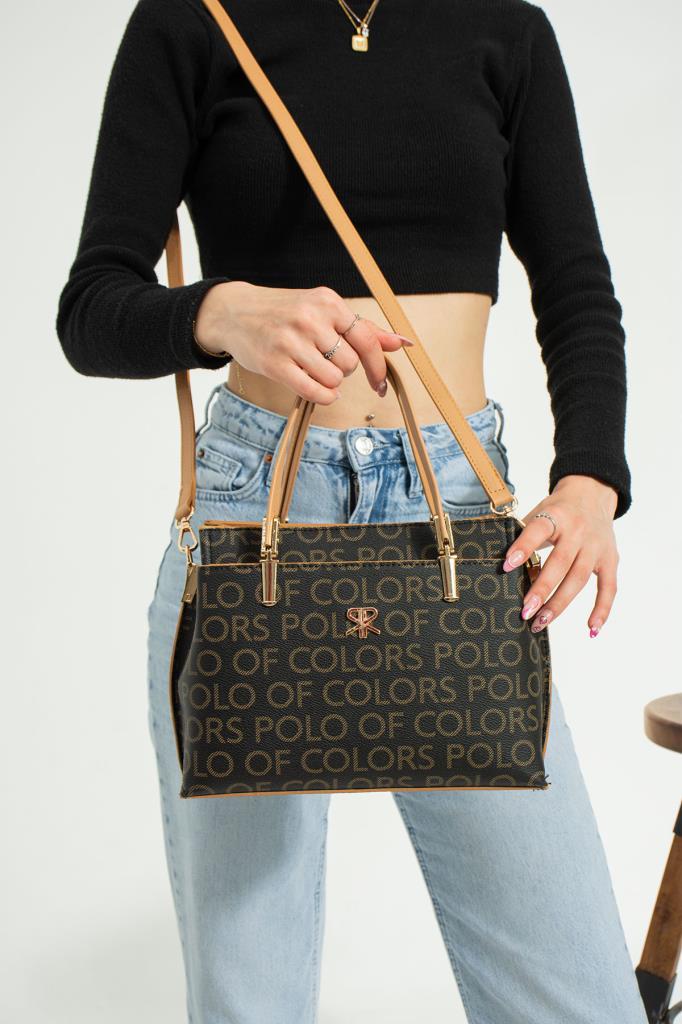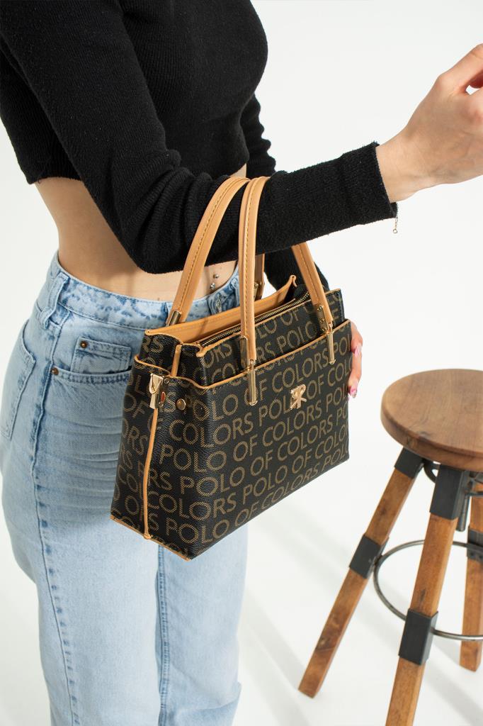 ImPolo Shakira Siyah Kamel Empirme Baskı Kadın Kol Ve El Çantası 21X27 Ebatında