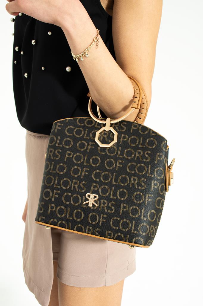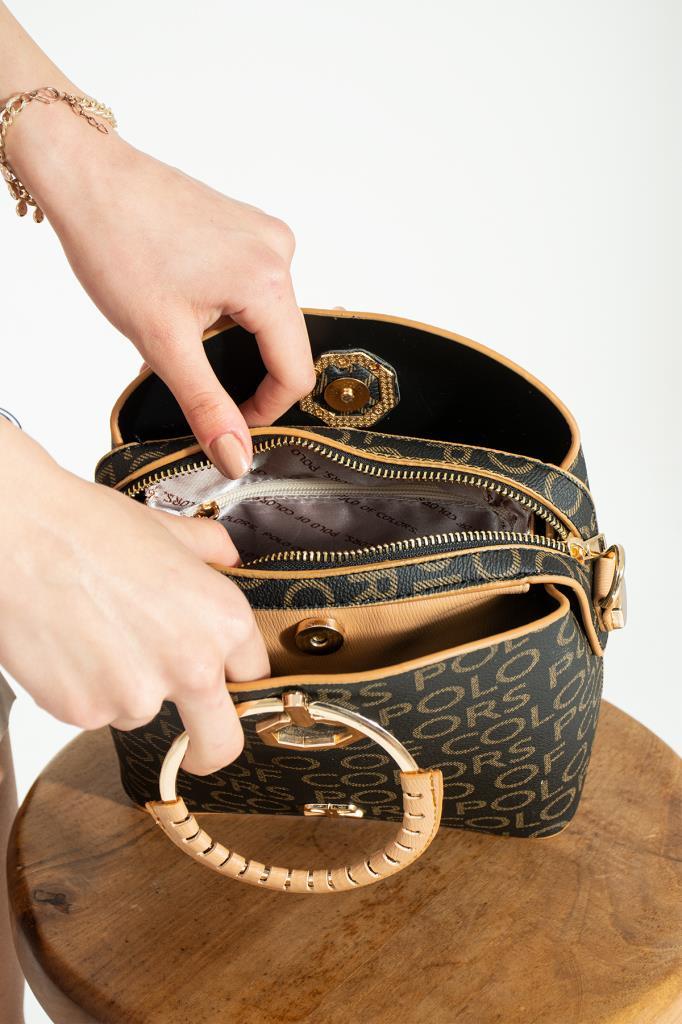 Impolo Sophia Çember Saplı Empirme Baskı Üç Gözlü Siyah Kamel Omuz Ve El Çantası 22×25 Ebat